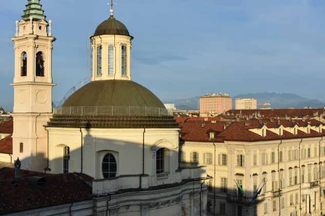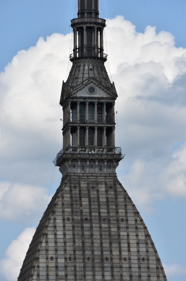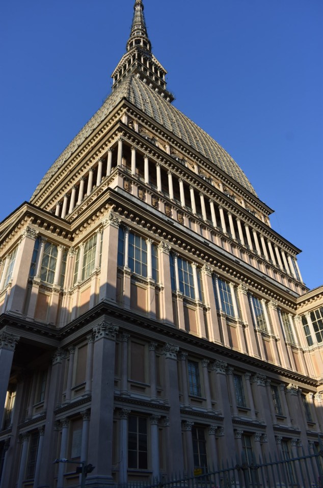 Our last stop for the day was Mole Antonelliana. In the 19th century the building was originally designed to be a synagogue, but it was never completed. The city eventually made it into the National Museum of Cinema which has a strong reputation and the mole has long been considered the city’s symbol. We wanted the buy tickets to both the museum and the tower, but the man at the counter said since the museum is closing, visit the tower today. From the outside it looks ancient, but thankfully a glassed in elevator whisks you to the top where you have 360 degree commanding views of the city all the way to the Alps.