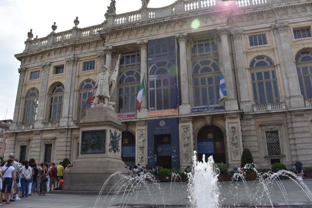 It was after midnight by the time dinner was over, but the city was wide awake. We walked down to Piazza San Carlo where there are twin churches and arcaded sidewalks to protect you from the sun and. It is like being in a movie set here. All of the buildings are big and beautiful. It was like being in San Marco in Venice with just as much grandeur. We passed the Egyptian Museum which is supposed to be second only to Cairo considering the number of antiquities. We will wake up early tomorrow for a full day of discovery and adventures.