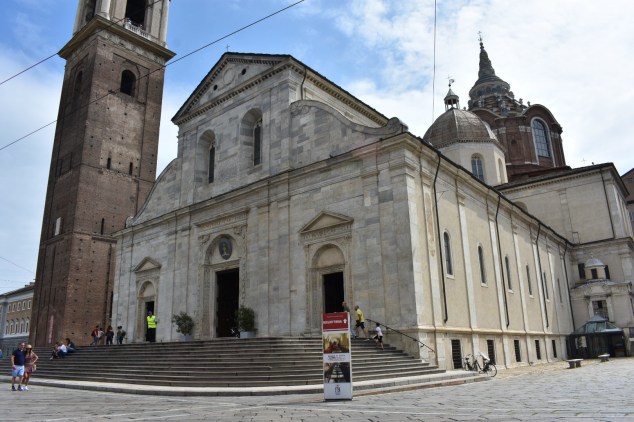 I have always known about the Shroud of Turin, but didn’t realize it was here in Torino (Turin) myself until my friend Alice asked if we had seen it in a Facebook comment. Located in the Cathedral of St. John the Baptist, it is considered a pilgrimage stop for believers. The size of the cloth is 14 ft. 5 in x 3 ft. 7 inches. It it is only on display certain times of the year and not this July or August. This morning we were able to see the display in the church that had the facsimile of the face of Christ enlarged so you could see the detail. Many knelt before it in prayer while others may have pondered the question, “Is the Shroud of Turin real.” Some scientists say it is a forgery made during the medieval period when reportedly someone even confessed to making it. Other scientists say that the people in medieval times did not have the technology to produce such an artifact. The Vatican has neither accepted nor rejected it. The current Pope wrote a beautiful statement upon seeing it about how we are fortunate to be in a beautiful place of prayer and peace.