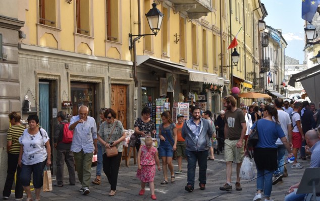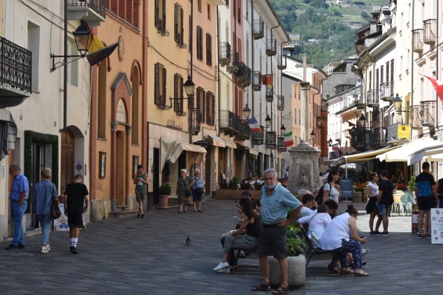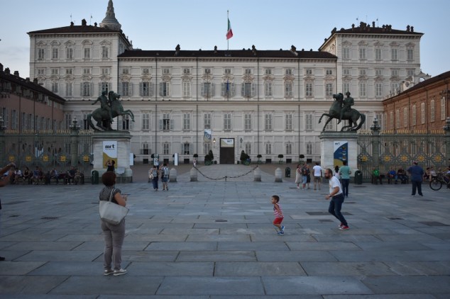 We spent some time walking through different piazzas and, one of them, Piazza Reale, was full of families enjoying a young pianist. One young boy jumped right in the fountain that shoots out of the sidewalk, but his family didn’t care. Several vendors walked around with balloons covered with blinking lights. We concluded the evening having a glass of wine in their outdoor bar area right on the square. It’s a pleasant evening in the 60s. We will miss Torino. Tomorrow we travel to Aosta in the mountains.