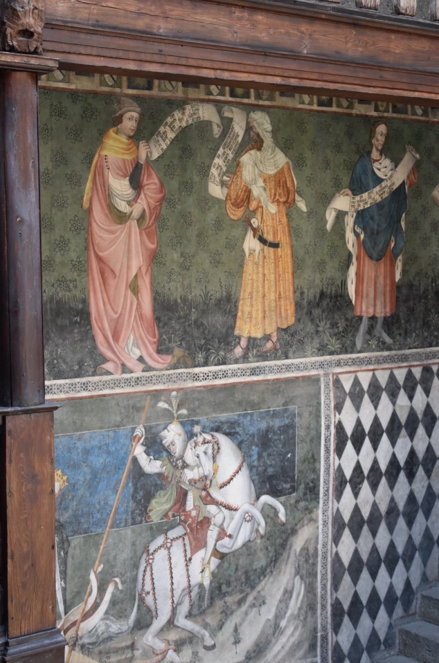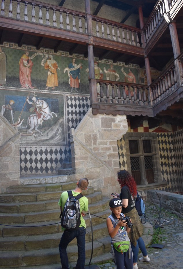 We stopped at a castle on the way called Fenis Castle. It’s a large fortified castle built of stone back in the 12th century. Our tour was in Italian, but it did not matter. Each room had a board with information in English. There were frescoes on many of the walls in astounding condition considering their age and old original wood work. We stopped in a local grocery store and although we did not speak Italian and the girl did not speak English, she made us a fresh ham and cheese sandwich.