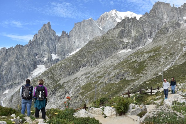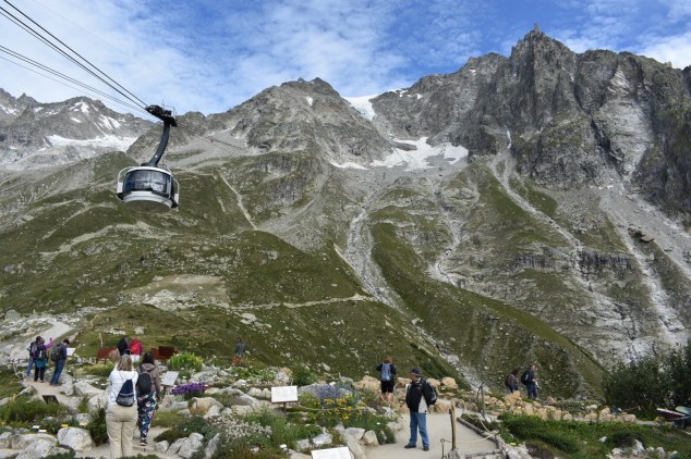 On our trip to the French side, we traveled with a mother and daughter from the state of Washington. We passed high above hiking couples in the snow who needed to mind their step around icy crevices. We even spotted tents at the base camps. I learned my niece Jessica’s children were hiking Mont Blanc at that moment. How wonderful it is my sister could be in New York and send photos of the two hikers to me. As I scanned the icy peaks, I wondered if some distant hikers could be them. They are very brave. Mont Blanc is covered in ice and snow and is very steep.
