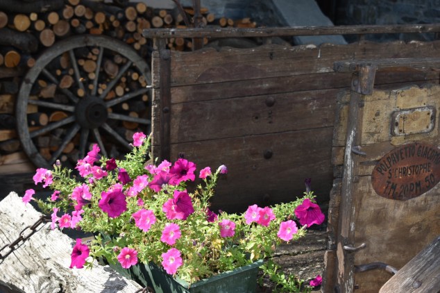 Tonight we had dinner at an osteria that served local specialties. The menu was small and included fried frogs, steamed roe, and calf’s tongue. I ordered polenta with mushrooms, The osteria was very pretty inside with wooden beams and alpine cow and chicken decorations. The town was a beehive of activity, but we decided the best way to end the day would be to just sit out on our balcony, look up to the lights on the mountains, and reflect on our memorable day.