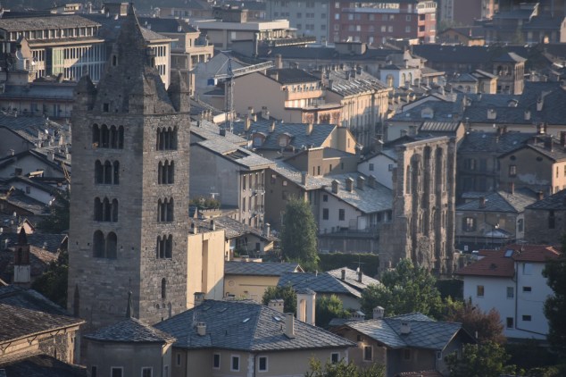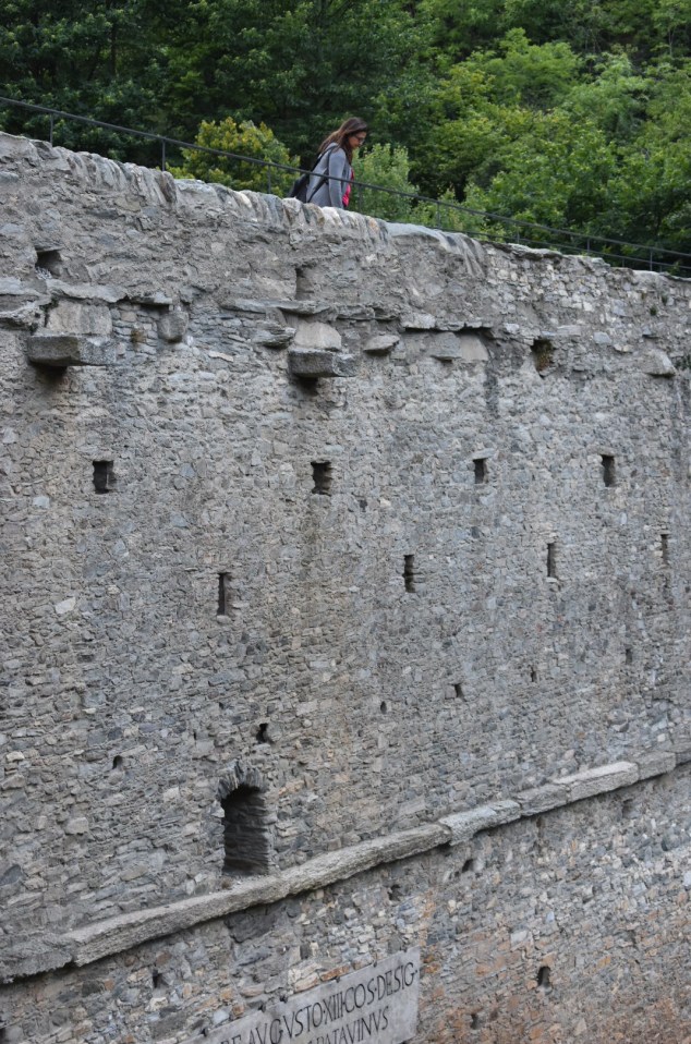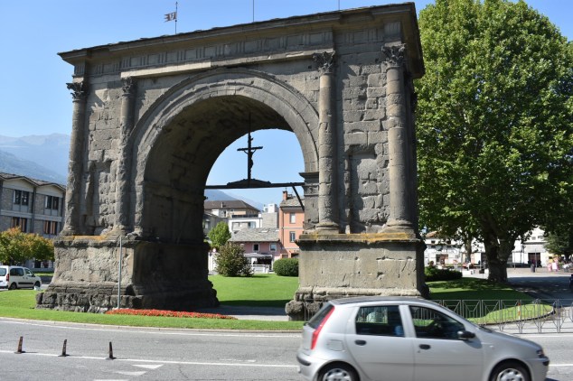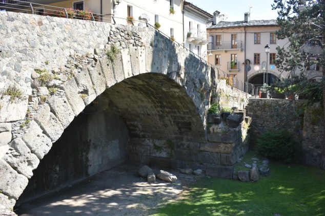 Aosta is such a pretty town nestled into the valley surrounded by mountains, some with towering rocky peaks. It’s a town where tourists come to visit, but more importantly it seems like an authentic town where people live and go about their ordinary life. Laundry flaps in the breeze on clotheslines or from balconies and lazy cats bask in the sun. But there’s something else interesting about Aosta. It has a Roman past and Roman ruins can be seen throughout the town.