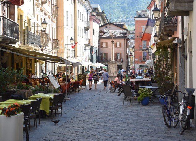 Last night there were several thunder showers in Aosta. Although we did not see any lightening, the boom of the thunder echoed off the mountain peaks. But by this morning the rain had stopped and we were able to dine outside for breakfast.