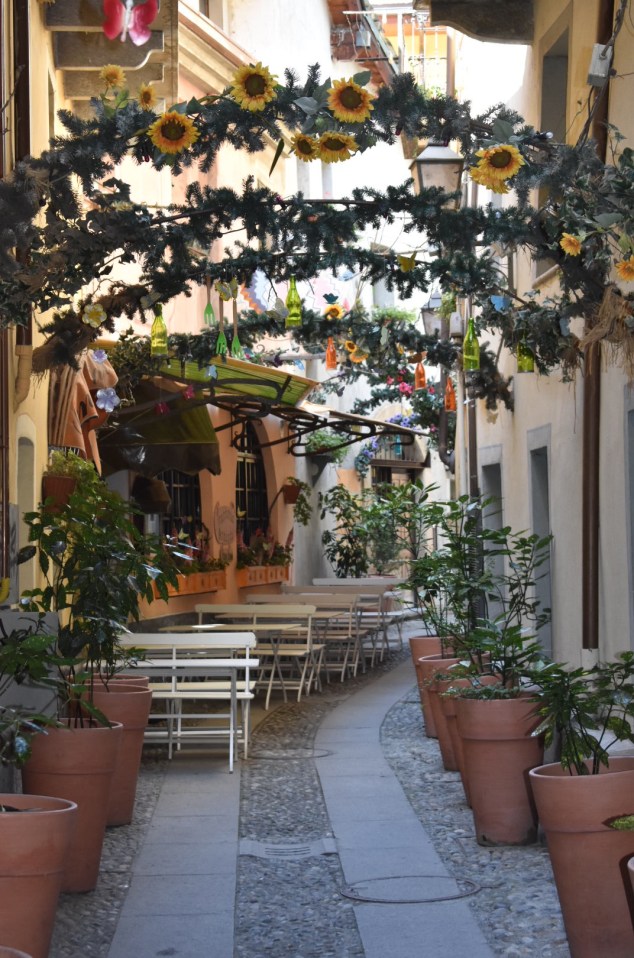 We decided to walk into town which was a pleasant walk down hill through a series of twists and turns with stunning views of the mountains. Arriving at the restaurant was a surprise. It was located on a very pretty pedestrian only street with small cafes and pretty shops. Ristorante Osteria da Nando is a family run restaurant with delicious food. We dined outside and had a traditional meal of crepes filled with cheese and ham, pork chops with mustard, and a coffee chocolate cream dessert.