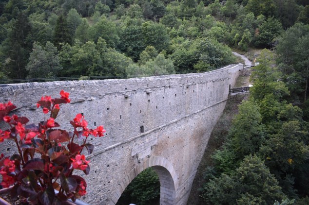 We took a short 20 minute drive to see a Roman Aqueduct that is off the beaten tourist trail, but was remarkable. Pont d’Ael was built in 3 BCE by the Romans to bring in water from the mountains for agriculture. It crossed a deep gorge with crystal clear water roaring down from the mountains. Standing on top of the aqueduct which was once used as a road to cross with animals, we could see waterfalls tumbling down steep rocky cliffs. Hardly anyone was there and the government had built a glass walkway which was beautifully lit so you could walk through the aqueduct. We liked the experience of walking through it and over the top so much we did it twice. A man working at the site gave us an informative history lesson about the aqueduct.