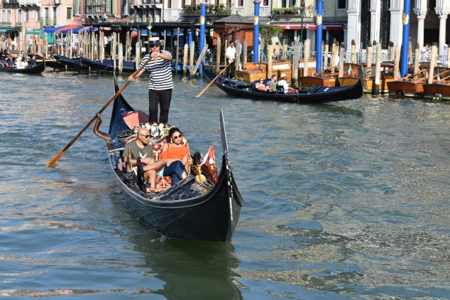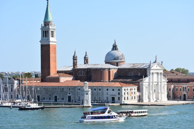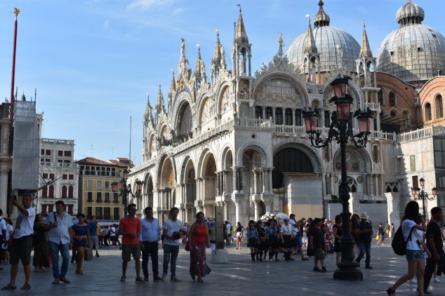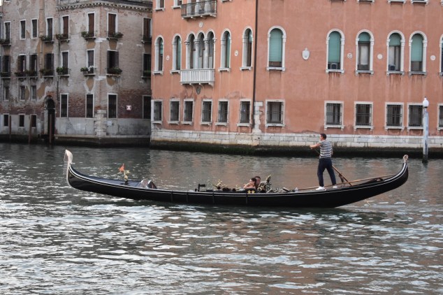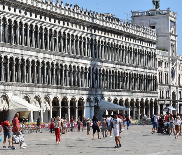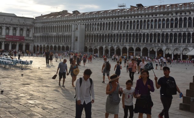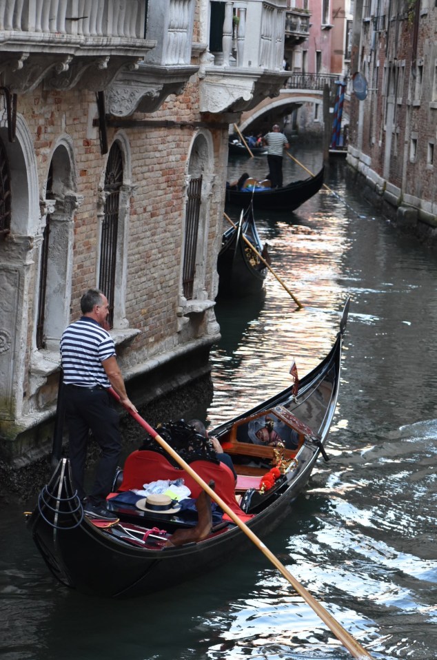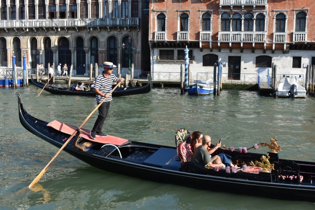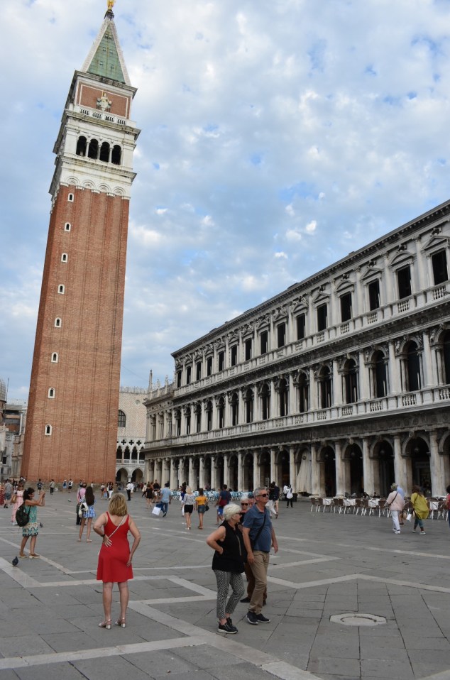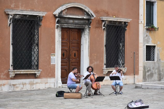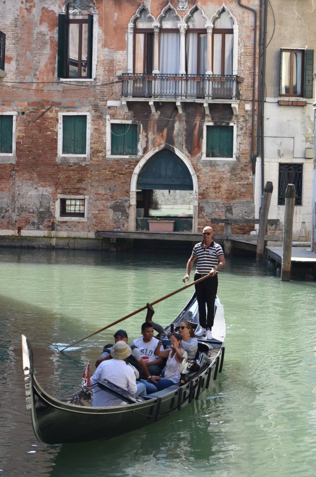 We ended our afternoon at San Marco at a traditional cafe that spills out onto the piazza with an orchestra we had visited last year. Many of these cafes can fleece the tourists, but this one is recommended by Rick Steves as being very fair. From our vantage point the people watching was fun. Tour groups dutifully followed their leader who strutted by holding an umbrella while families stopped for fun selfies in front of San Marco. We noticed some representatives from Respect Venezia shoo people away from sitting on the edge of the arcades of San Marco which is now a violation. We learned the 100th violation since May was given out yesterday to a tourist in a bikini sunbathing at a museum garden.