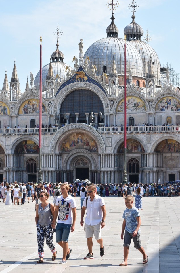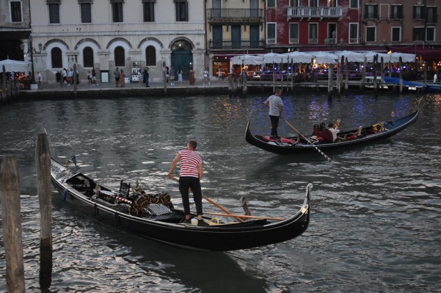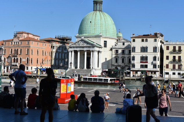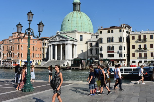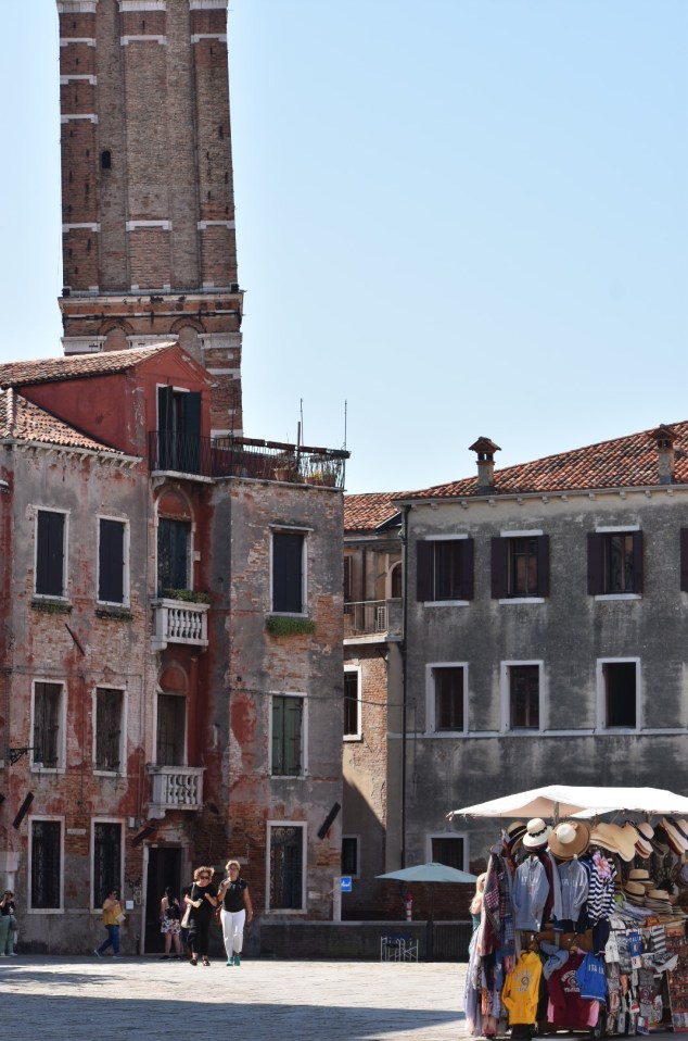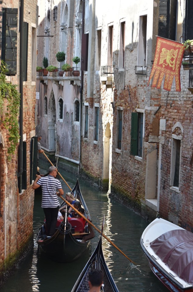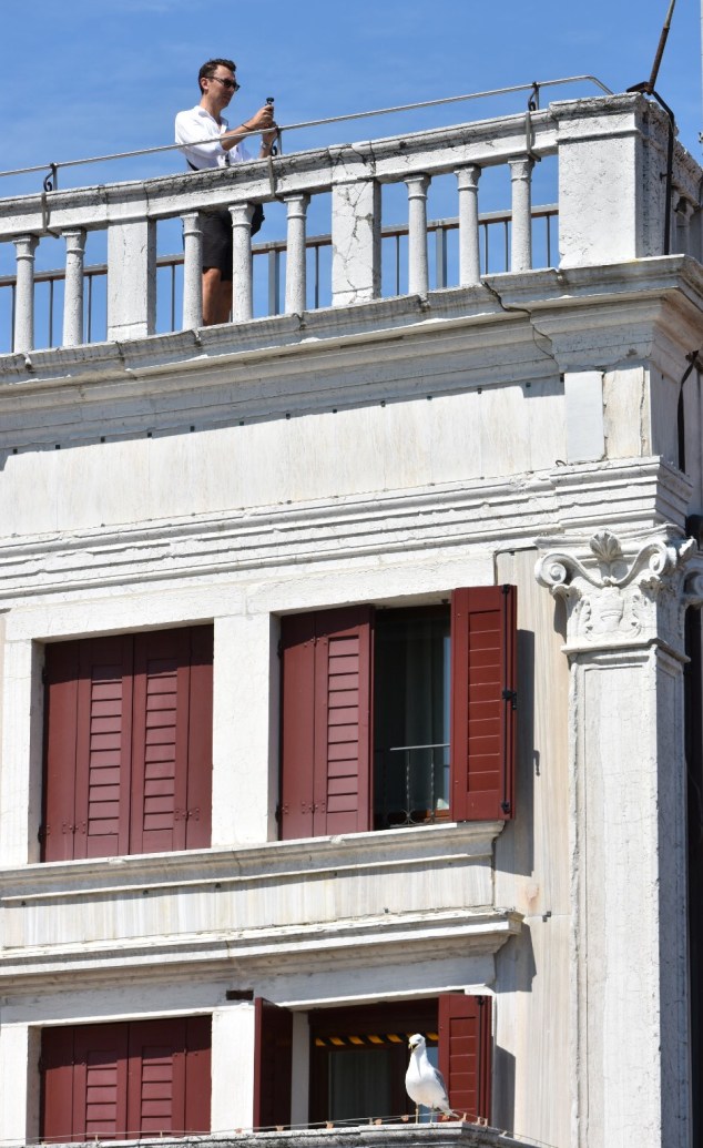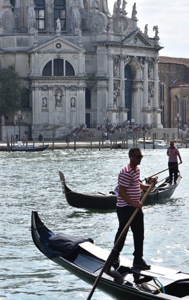We ended our afternoon at San Marco at a traditional cafe that spills out onto the piazza with an orchestra we had visited last year. Many of these cafes can fleece the tourists, but this one is recommended by Rick Steves as being very fair. From our vantage point the people watching was fun. Tour groups dutifully followed their leader who strutted by holding an umbrella while families stopped for fun selfies in front of San Marco. We noticed some representatives from Respect Venezia shoo people away from sitting on the edge of the arcades of San Marco which is now a violation. We learned the 100th violation since May was given out yesterday to a tourist in a bikini sunbathing at a museum garden.