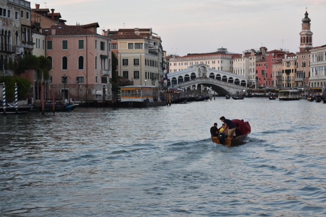 Dinner tonight was in Campo San Polo at Birraria La Corte. It’s a pretty campo where children play soccer after dark and people sit on park benches just enjoying the ambience. At the restaurant we sat outside where we could people watch. One American college student called out to the waiter as she sat down, “Bring me a big bottle of water!” We took a vaporetto back to our hotel to see Venice from the water. It was the perfect ending to a really special day.