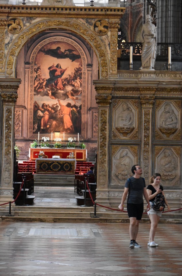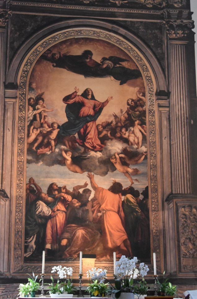 This morning we took the vaporetto one stop across the canal from our hotel to visit Basilica de Frari. Dating back to the 1400s it contains extraordinary art work by Titian and Bellini. When we arrived sadly they were having a funeral service so we were unable to get close to the altar, but it also made us feel as if we were in a living church. We have been in this church four times now, but we never get tired of it.