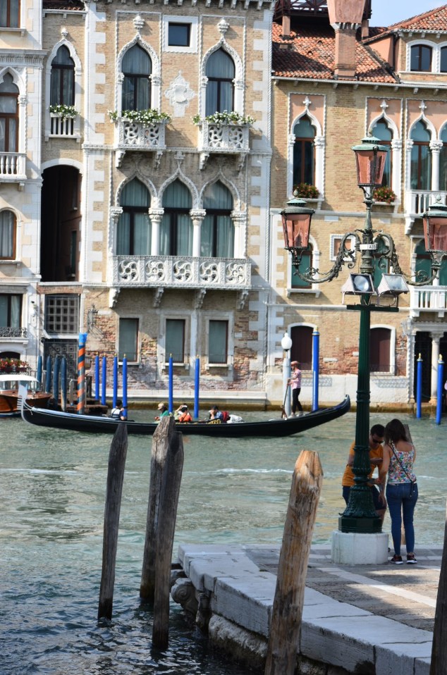 To get to our hotel NH Collection we took a vaporetto from the train station which wound its way down the Grand Canal from one stop to the next Dodging wooden water taxis and long sleek black gondolas until arriving at our hotel which is just beyond Rialto. We stayed at this hotel last year and liked it very much because it is right on the canal, yet not in the hustle and bustle of all the tourists.