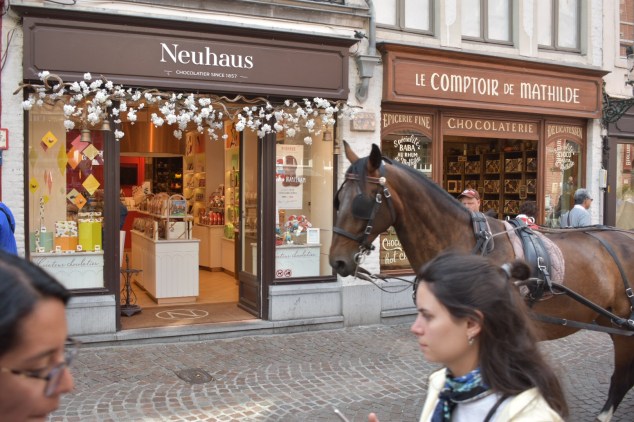 It was supposed to be a rainy day in Brugge today so we were pleasantly surprised to wake up to sunshine. We enjoyed our breakfast at the B&B on the outside terrace right on the canal and could hear a child who was a beginning piano student, practicing. Some of the songs were even familiar to us, such as “Old McDonald.”