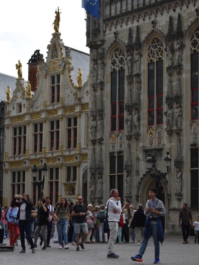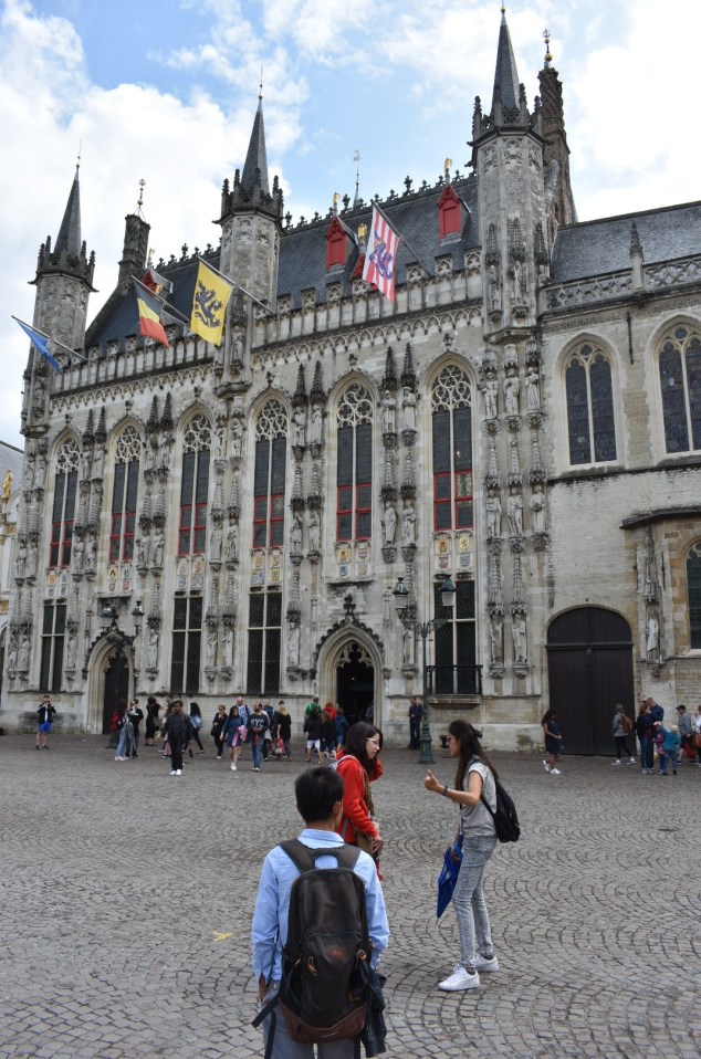 Using our Brugge card, we visited the City Hall which was built in the 1400s when Brugge was a wealthy city. The paintings tell the story of different figures through time. They had a very detailed map from the 1500s which shows the city once had a ring of 26 windmills. Now there are four.