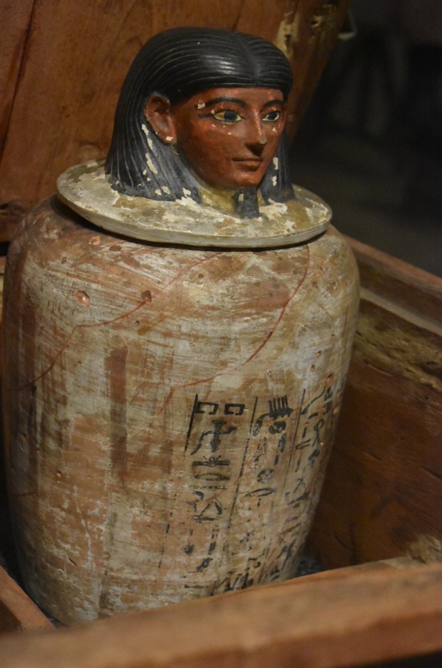 Upstairs was an exhibit called Invisible Archaeology. It talked more about the science of learning about artifacts and how technology has assisted. For example, we saw the jewelry a mummy was wearing in an X-ray that was recreated with a 3D printer. A video with a light show on a white reconstruction of the mummy’s coffin showed how the coffin was painted in different layers. It was quite moving. I liked this quote at the end of the presentation. “Real objects and digital ones are not interchangeable.They compliment each other and act as a bridge that connects those who protect them with those today who observe and ask questions about them.”