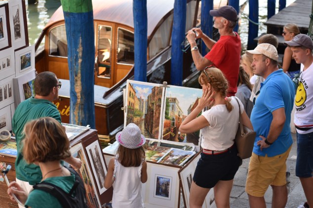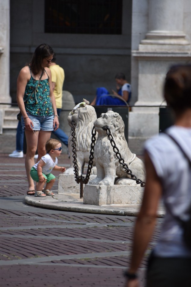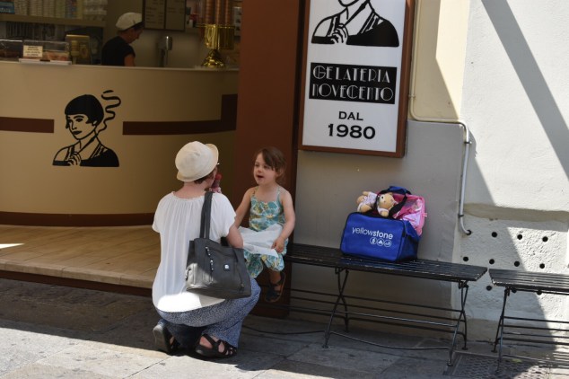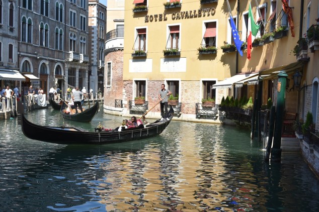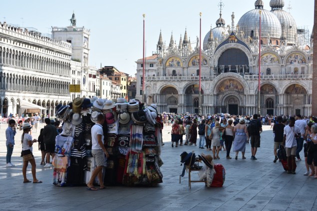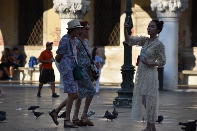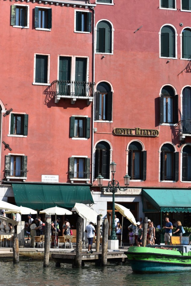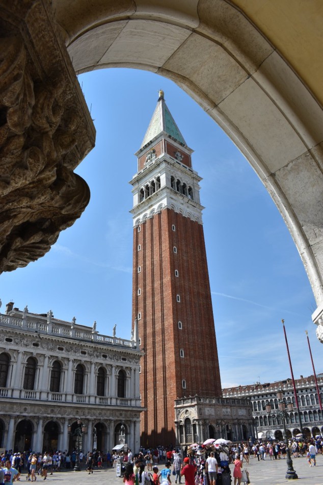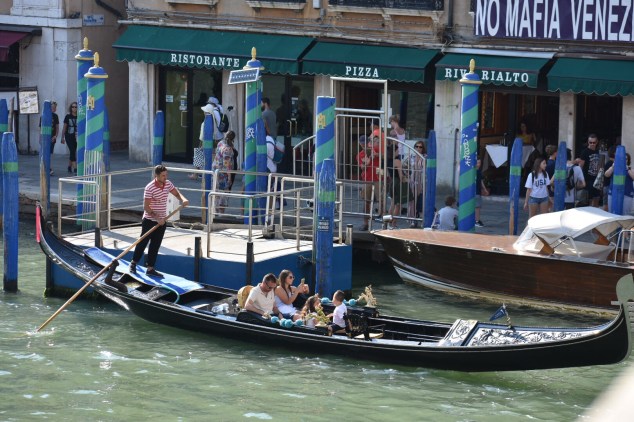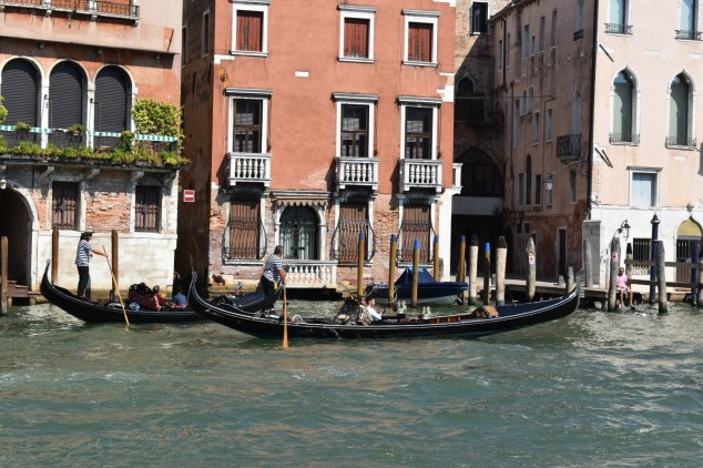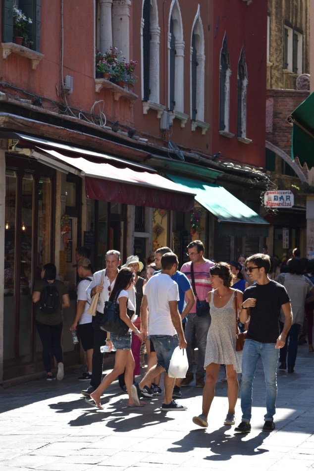 Back at Piazza San Marco we sat outside at a cafe with a live orchestra to people watch. Tour groups full of weary tourists strolled by following guides holding limp flags. Families of small children stopped to feed the pigeons. One family had a pigeon eating on top of a girl’s hat. Selfie sticks are still popular and we sometimes wonder if the people actually look at the monuments they snap pictures of themselves standing by. Bells rang out every hour echoing through the Piazza. We could have stayed there for hours.