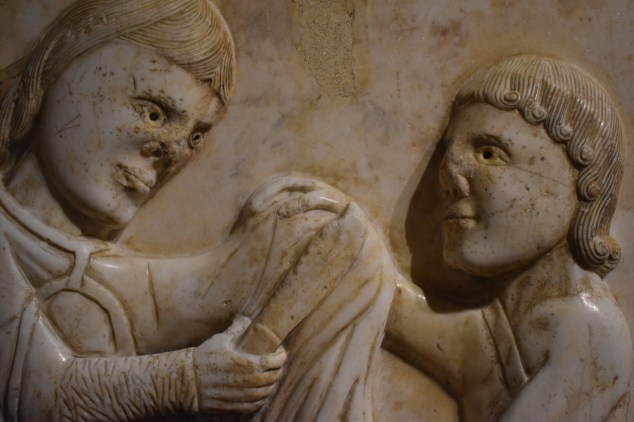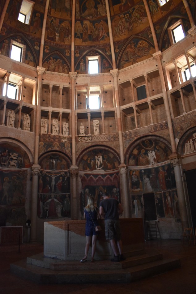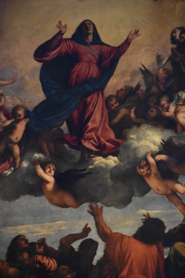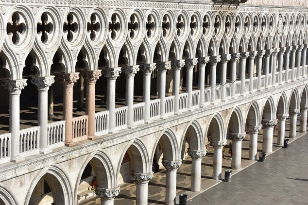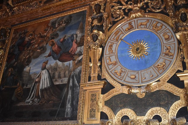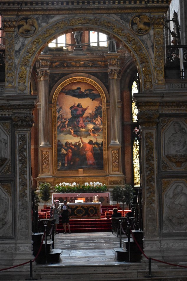 The lines to visit St. Mark’s Basilica were long in the hot Venetian sun, but by going online you can buy skip the line tickets within 5 minutes of your visit. We visited at 4:30 which only gave us 30 minutes before closing, but the lines were down. The Basilica houses the remains of St. Mark and is a pilgrimage spot. The ceilings are covered with glittering gold mosaics which are centuries old. They may not be as shiny as they once were, but are beautiful. We paid 2 euro extra to see a storyboard all in gold with precious jewels in honor of St. Mark. Climbing the steepest steps ever, we visited the archaeology exhibit which included four horses that Napoleon had stolen, put on the Arch of Triumph in Paris, and were returned to Venice. They are inside to protect them from the elements and the ones outside are reproductions.