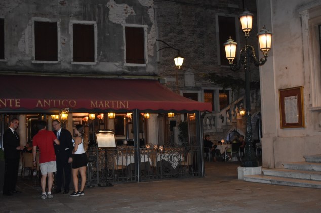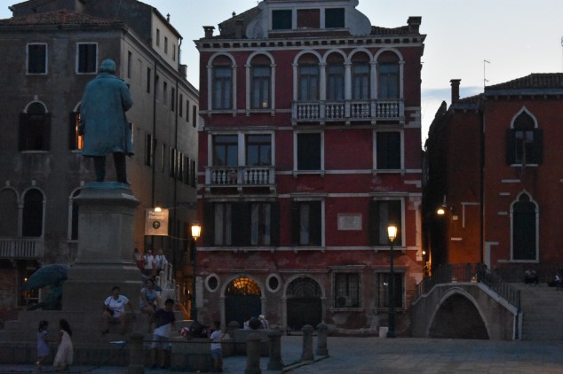 Following Google maps back to our hotel, we made new discoveries. In one campo families dined outside at two cafes. We sat on the marble steps of a theater just to enjoy the ambience.