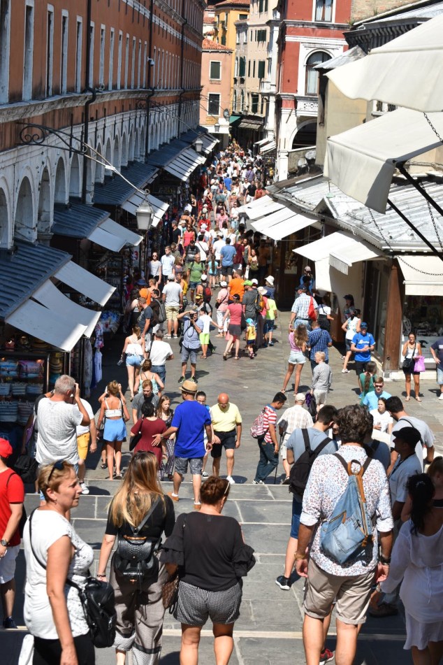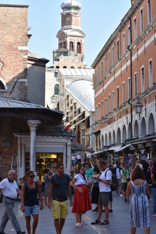 We have decided that Venice itself is a museum. While searching for a mailbox down the Grand Canal we wandered into a campo we had never seen. A man sitting on the edge of a well played a recorder in front of an ancient church with its wooden doors tightly shut. We found a small restaurant on the corner of the campo where we dined on pizza and spaghetti Bolognese. The servers were so friendly, but none of them were Italian. This is the Italy of today where people living here are from many countries.