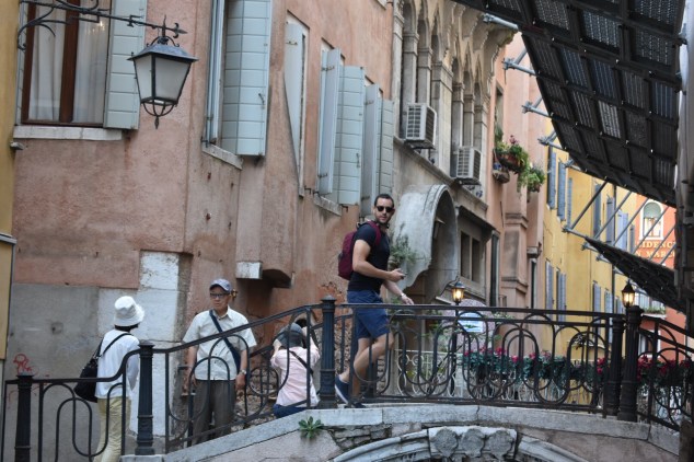 Just before we reached our hotel the sound of an accordion echoed in an alley with a small bridge crossing a lagoon. It was singing gondolier. It was the perfect backdoor moment.
