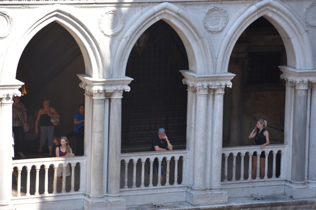 I have always known about the Bridge of Sighs and remember it being depicted in a romantic old movie, “A Little Romance,” as a romantic bridge, but in reality, this is far from the truth. From inside the museum, we crossed from a palatial palace over the bridge to a prison. This was the last look prisoners had long ago of Venice. Visiting the prison in the intense heat of Venice was torturous so I can’t imagine what it would have been like long ago. It had cold looking stone rooms with iron bars. Escape would have been impossible. I was really happy not to be in it anymore when we exited the building.