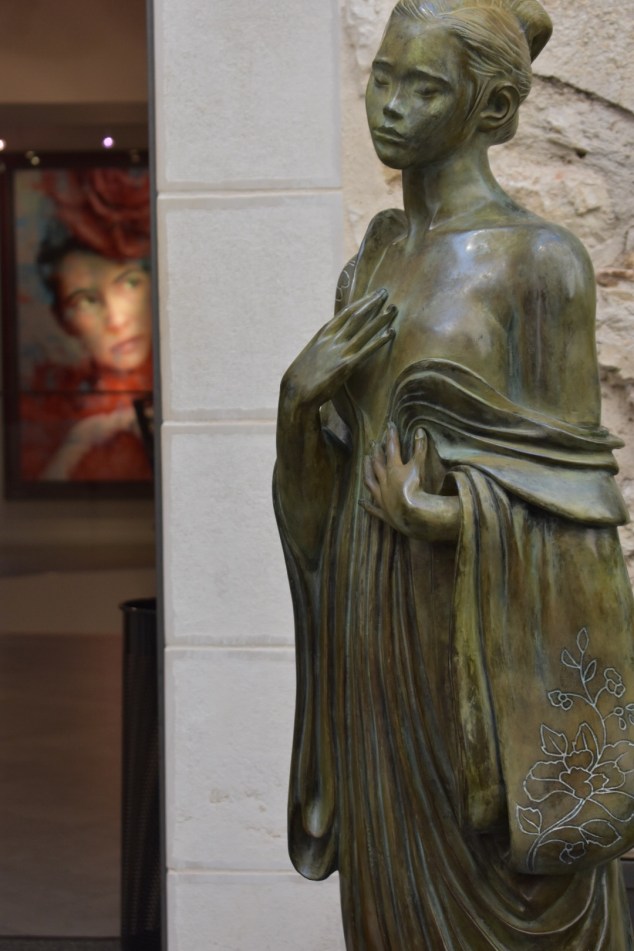 The Correr Museum had an interesting combination of decorated rooms with period furnishings, marble floors, beautifully painted wallpaper with hand painted animals, and statues standing before mirrors. This gave the observer a different perspective. “You use a glass mirror to see your face; you use works of art to see your soul,” said George Bernard Shaw.