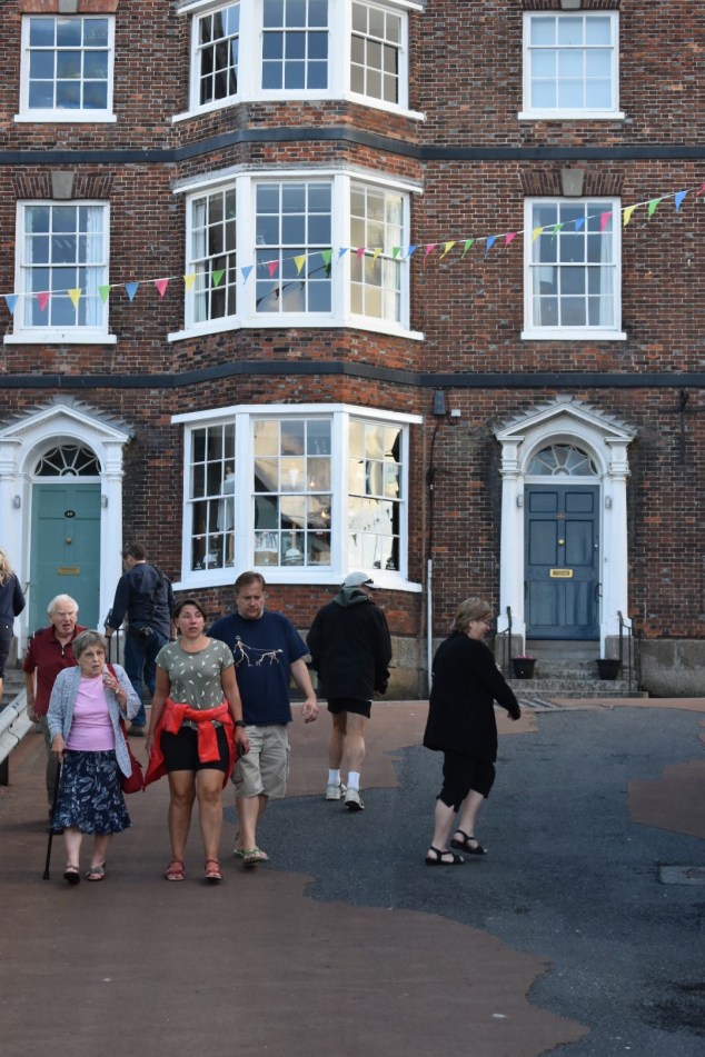 Down by the pier in town, little had changed. Sailboats bobbed in the harbor, people strolled down by the sea wall eating ice cream, dogs raced on the pebble beach, and children were crabbing. We saw a young girl release her tiny crabs back into the water. As they scuttled down the slipway, she chased a seagull away and called out goodbye to the crabs.